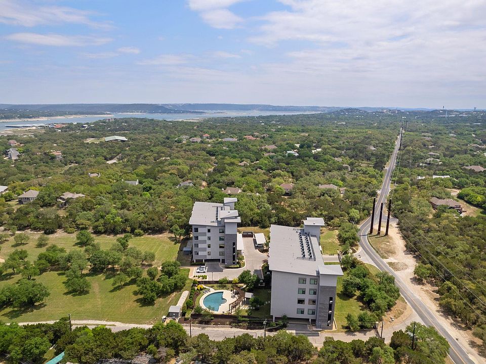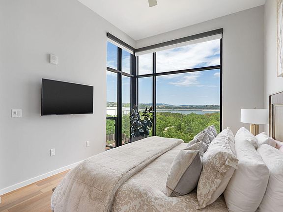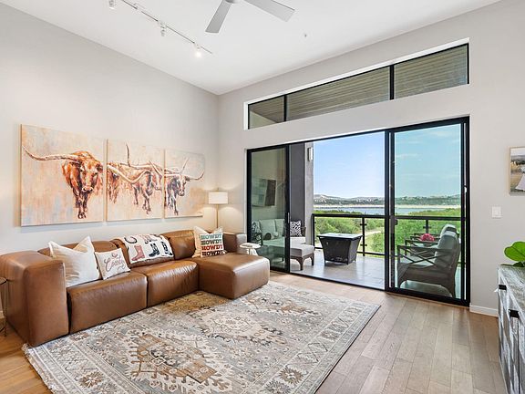 Step into luxury lakeside living at the Waterfall on Lake Travis, where every day feels like a retreat. This 3-bedroom, 2-bath, 1,379 sq ft residence on the 3rd floor offers sweeping views of Lake Travis and the Texas Hill Country from nearly every room. Inside, enjoy floor-to-ceiling windows, hardwood flooring, high ceilings, and an op’s kitchen features quartz countertops, a spacious island, and stainless steel appliances, including a refrigerator. The spa-inspired primary suite offers dual vanities, a walk-in shower with dual shower heads, and custom closet built-ins for optimal organization. Step onto your private balcony to take in front-row views of sailboats, fireworks, and a serene 14-acre nature preserve.  Community amenities include a resort-style pool overlooking the lake, a fully fenced pet park, scenic trails, lakefront fire pits, storage for water toys, a treehouse, and reserved garage parking with elevator access. Located just steps from South Shore Marina and minutes from top dining, shopping, and recreation, this property offers a low tax rate, Lake Travis ISD zoning, and true lock-and-leave convenience. Whether you’re seeking a full-time residence, getaway, or investment property, this home delivers unmatched views, modern comfort, and an exceptional lakeside lifestyle.