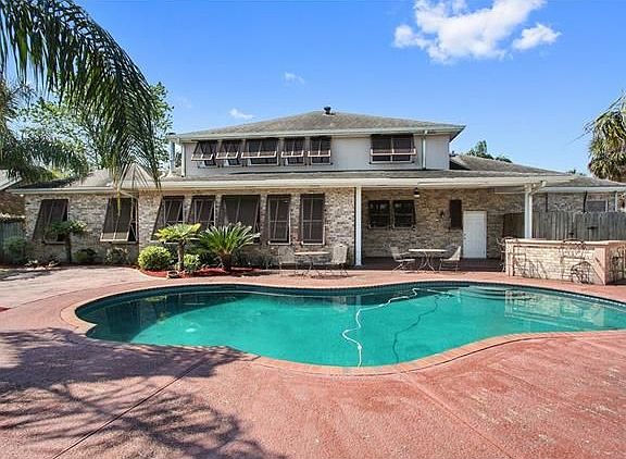 Breathtaking home in Lake Forest Estates on the lake with round pool. Huge den with 20ft trey ceilings, fireplace & wood floors. Master suite with fireplace and gorgeous bath. 4 bdrms 3.5 bath. Kitchen with high end appl. frig., counter bar, island, cherry wood cabinets, granite counters buffet corner w/ cabinets & wine refrigerator, game room/ work out room. Wood floors throughout. 3 A/C units, alarm, 2 walk in attics, remote gate opener, hurricane shutters,