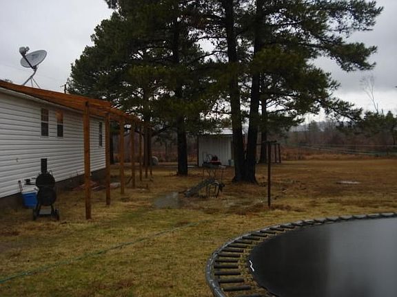 3 bedroom1 bath home on 10 acreswith pond .Homehas vinyl siding and metal roofKitchen has ceramic tile counter tops and stainless steal appliances ,Large laundry room off the kitchen,Living roomhas a gas log fireplace ,Master bedroom has built in entertainment Spacious Bathroom has large whirlpool cornertub withsperate shower .
