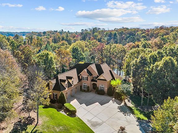 This is the waterfront home you've been waiting for!! Located on a private, 1.77 acre lot with mature landscaping and a private dock, this all brick home features a 4-car attached garage, a circular driveway, a huge screened porch overlooking the lush backyard and mature hardwoods for tons of privacy. The open, bright floorplan features the primary bedroom AND a guest bedroom on the main level, a formal dining room, a home office, a sunny breakfast area, and a beautiful living room with a vaulted ceiling and gas fireplace. The gourmet kitchen features a thermadore gas cooktop, double wall ovens, a large center island and a farm sink. Upstairs you will find two additional bedrooms with walk-in closets, an oversized bonus room with a bar area and a private flex room that could be used as an additional bedroom. Clover Schools and Low Taxes!! Don't let this one get away!