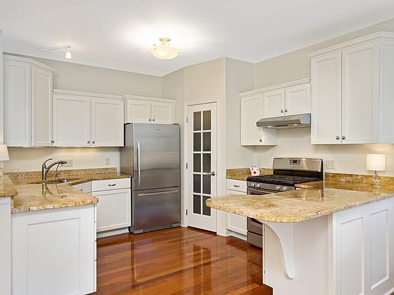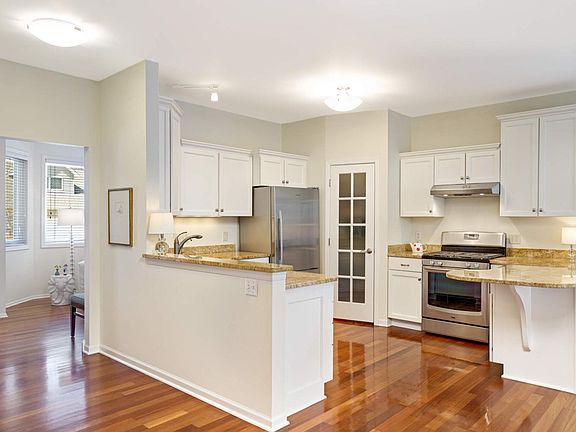 Hard to find beautiful one level living --- Bright and sunny end-unit that has been meticulously maintained and updated. There are Brazilian cherry hardwood floors, enameled white woodwork, gas fireplace and all newer windows throughout. It is an open floor plan with updated kitchen with walk-in pantry and easy flow to the great room and dining room. The front room area is a flex space that could be an office area, reading/TV room, or quiet space to relax in the sunshine. The main bedroom has ensuite bath and large walk-in closet, marble topped vanity and walk-in shower. The second bedroom is also large and has a walk-in closet and french doors. The second bath has a deep soaking tub. This home has a newer triple wide sliding glass door---it is fabulous and opens to the large deck and outdoor space---which has a new privacy fence. There is an attached garage, and excellent storage. Professionally landscaped.