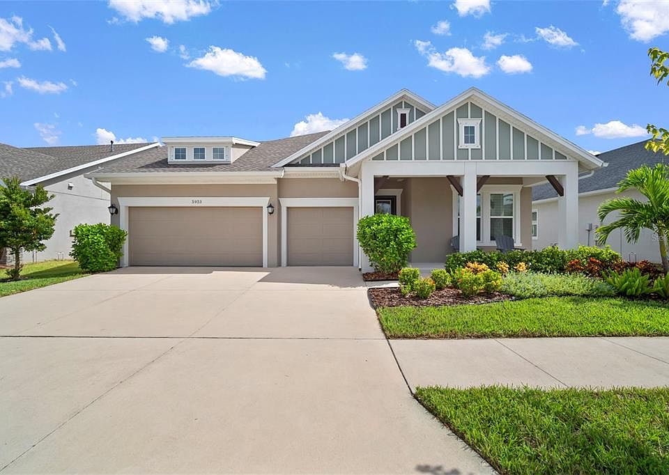 Welcome to 5923 Silver Sun Drive! Elevate your living in this wonderful 4 bedrooms, 3 full bathroom Waterset Development Single Family Craftsman-Style Home centrally located in Apollo Beach. Resort like living at its finest! Revel in a modern open concept layout with over 2600 sf of living space and spacious 3-car garage. Chic gourmet kitchen with quartz counters, pendant lighting, and sizeable island with seating. Want indoor outdoor living? No problem! Enjoy a nice cool swim in your private pool and lanai or gather with family and friends and host a fun pool party. Backyard also includes a hot tub and gazebo, the perfect outdoor space for relaxation and entertaining! Numerous community amenities that include a newly finished expansive outdoor recreation center. Enjoy fitness centers, tennis and pickleball courts, walk/bike trails. Pools, water slides, splash park, playgrounds, dog parks, playgrounds. This home is a must see and will not last long. Schedule a private showing today, cheers!