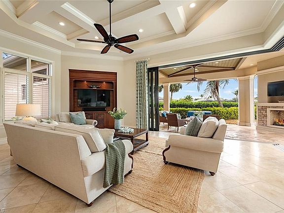Transferrable House Membership included and Quail West’s new Resident Golf Member-in-Waiting Membership category is available and waitlist is short. Experience unmatched luxury living in this estate home built by McGarvey Custom Homes in 2013, nestled within the prestigious enclave of Quail West. Occupying a expansive 0.82-acre lot on a quiet street, this residence offers captivating water views and spans 4,758 square feet of living space on a single level. This spacious home includes 5 bedrooms with walk-in closets and 5 en-suite bathrooms, a study, nearly 850 square feet of outdoor covered lanai living space, air-conditioned garage parking for 4 cars and a fabulous custom pool and spa. The gourmet kitchen is open to the indoor and outdoor living areas and features a Wolf gas cooktop, double wall ovens, Sub-Zero refrigerator, a pantry, an island with a prep sink, a large bar for ample seating. The adjacent butler’s pantry offers a wine cooler, beverage fridge, ice maker and prep sink. Designed for year-round enjoyment, the expansive covered lanai features an outdoor gas fireplace, a beautifully crafted ceiling, a top-tier full outdoor kitchen with a 36” Wolf grill, Sub-Zero fridge, prep sink and bar for your guests. Motorized screens and shutters around the lanai provide protection from the elements, while the heated pool and spa provide the perfect space for relaxation and southern exposure sun-soaked lounging. The spacious primary suite offers a sitting area with a bay window, a tray ceiling, 2 custom walk-in closets and a spa-inspired bath. One of the 5 bedroom suites is a separate casita ideal for guests, accessed through the lanai and featuring lake views, a wet-bar, fridge and spacious bathroom with dual sinks. Highlights include soaring ceiling heights of 12’9 to 14’9 feet, floor-to-ceiling living room windows with pool and water views, a zero-corner pocket slider in the family room for seamless indoor-outdoor living, impact glass windows and doors throughout and a whole house generator. Other features include extensive crown molding, custom ceiling details, solid 8’ tall doors, in-ceiling speakers and wood planation shutters. Quail West offers a captivating lifestyle in an exquisite community with 36-holes of pristine Arthur Hills-designed championship golf, a 100,000 SF grand clubhouse that’s the hub of social activities with multiple dining options, an indoor lagoon-style Junior Olympic-sized pool and a rejuvenating full-service spa. The sports center area offers 8 clay hydro tennis courts, 4 pickleball courts, 4 bocce courts and a 2-story fitness & wellness building.