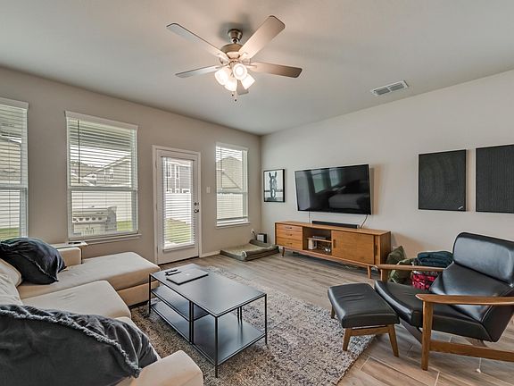 Beautiful single-story house in Aubrey ISD!! The house has 4 bedrooms, and 3 baths with an open floor plan. The well-appointed Kitchen with gray cabinetry showcases a walk-in pantry, generous cabinet space, and a breakfast bar, creating a seamless connection to the dining and living room area. Bright and Spacious bedroom with Master having a walk-in closet with carpet floor and connected Bathroom featuring tile flooring, oversized vanity, double sink, and shower with separate bathtub. The backyard has a beautiful covered patio ideal for summer cookouts. Refrigerator, washer and dryer is included.