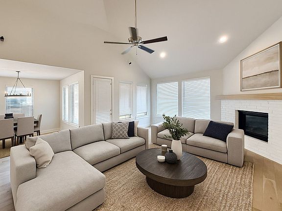 Inside, discover high ceilings, abundant natural light from expansive windows, and two spacious living areas one anchored by a cozy fireplace and another upstairs for a versatile retreat or game space. A bonus/media room offers the perfect spot for movie nights or a home office.