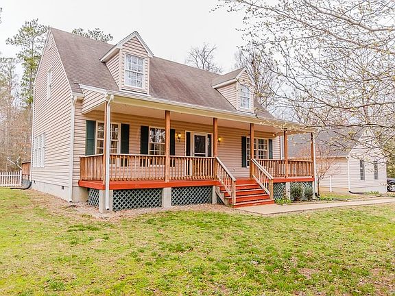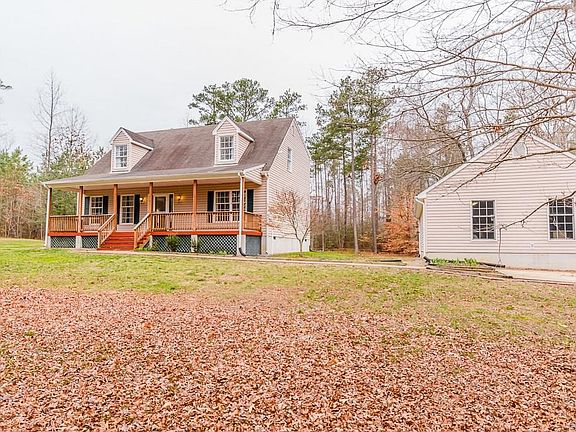 PRIVACY! Welcome to this 3 bedroom home that features a first floor bedroom and full bath, hardwood flooring, and a separate utility room. This home is on 6.49 acres. The eat-in kitchen features hardwood flooring, tile backsplash, and island. All appliances convey. The exterior features a large rear deck and patio area perfect for entertaining. Come relax on the front country porch. The upstairs has two bedrooms and a large bathroom with a jetted tub and separate shower. The detached 3 car garage is wired with a separate panel and includes a work bench and shelving.