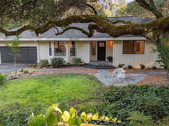Welcome to this lush, bucolic property nestled amongst majestic oaks on over an acre in the boho chic community of Sebastopol. This 3 bedroom 2 bathroom rancher boasts a vaulted redwood trimmed ceiling plus a cozy wood stove in the living room with skylights to boot. New interior paint and engineered hardwood floors throughout. The dining room has a slider that opens to a private back deck ideal for dining al fresca. The kitchen has new quartz counters, painted cabinets and new au natural wood pulls. There is an indoor laundry room with two bedrooms and a shared bathroom in the hallway. There are updated light fixtures throughout the home as well. The primary suite has a walk-in closet, outdoor access and an en suite bathroom complete with a barn door, new shower door, plumbing and lighting trim. A full sized attached garage located off the kitchen is great for your storage needs. A newer concrete slab can be converted to a kennel or outbuilding, buyer to investigate. This property was home to a flock of sheep and a herd of Alpacas who loved the oaks and subtle topography of the land. This could be a horse property, buyer to investigate. This is the perfect ranchette where privacy and serenity abound. All within a 10 minute drive to the Barlow and the best of Sebastopol.