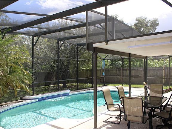 What a welcoming neighborhood! This 3 bedroom, 2 bathroom POOL home has NO HOA and centrally located to Disney, MCO Airport, and Universal. Favorite features of this home are the SCREENED in pool with SUNSHELF, covered PATIO space for outdoor entertainment, and additional yard space on this extra WIDE LOT. Inside the slider doors is an open living room/dining room with VAULTED ceiling, natural light, and engineered WOOD floors. A pass through window keeps the space open into the KITCHEN which features EXTRA CABINETS with BUFFET AREA and BREAKFAST NOOK. Primary bedroom with WALK-IN CLOSET and beautiful private entrance to POOL; has an ENSUITE bathroom with DOUBLE SINKS, vanity space, and LARGE SHOWER. The two additional bedrooms are located on the opposite side of the living room and share a bathroom in between. This property is currently home to steady renters who show interest to extend lease, making it an excellent investment property. Or if you want to make it your own home the lease ends 1/31/26 so a Post-Occupancy can be taken into consideration on timing for move-in. Let's talk and see what works best for you.