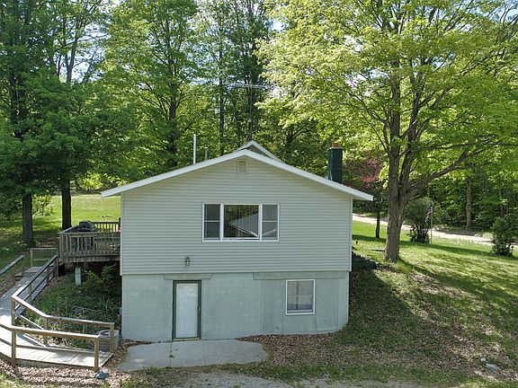 Spacious, well maintained ranch style home with 4 bedrooms and 2 bathrooms on 20 nicely wooded acres. Tastefully decorated including knotty pine interior, family room with wood stove, massive master bedroom, walk-in closets and doorwall to deck and gazebo. Perfect home for a large/growing family. Currently used as a vacation rental. Also, two detached garages, 24x28 and 20s24 with a 8x20 wood storage area. If you're looking for peace and quiet, this is it!