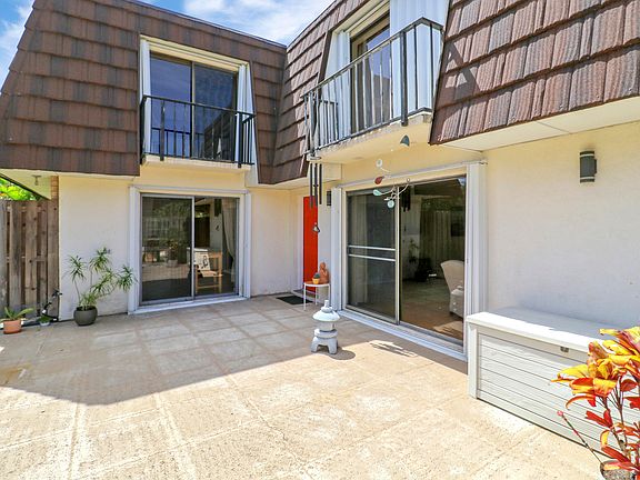 Experience the coastal lifestyle in this 2BR/2.5BA townhome in River Pines! Bright open layout with tile and wood floors throughout. Main level features a spacious eat-in kitchen with granite countertops, stainless steel appliances, ample cabinetry, and a half bath with full-size washer/dryer. Living area opens to a large private fenced patio with courtyard feel. Upstairs offers two bedrooms, including the primary suite with walk-in closet, updated bath with walk-in shower, and private balcony. Community amenities include 2 pools, tennis and racquetball courts, trails along the Intracoastal, and private access to a dock with kayaking, fishing, and beach area. Pet-friendly, all ages welcome, with optional golf memberships at Miles Grant. Minutes to beaches, dining, shopping, and US-1.