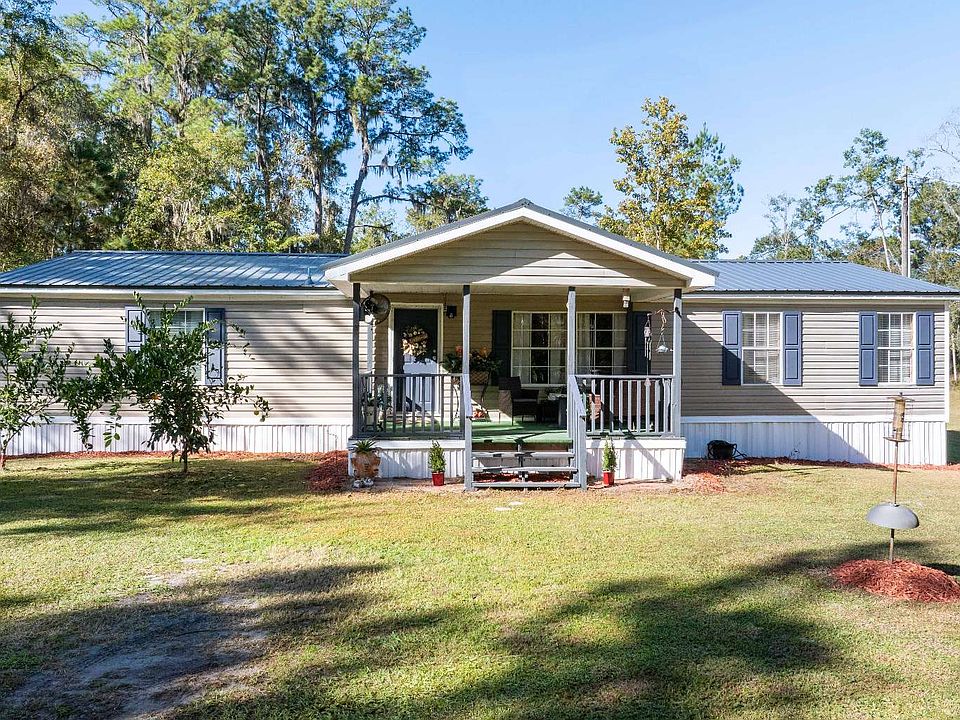 Don't miss this opportunity in North Florida to own a spacious shop, charming home and 2 countryside acres in beautiful Live Oak. Fully insulated 30x40 high-bay shop with 200 amp separate electrical service has 10x10 rollup doors, 10ft high access, 10x30 covered porch, and a concrete slab flooring. Perfect for hobbyist, carpenters, and tradespeople who want some serious workspace. You can also relax on this 2 acres, across two lots, property which houses a 3 bedroom 2 bath triple wide mobile home. This cozy home features front and back porches, a split floor plan, open kitchen that flows into the great room, and a spacious living room with plenty of room to entertain. Enjoy outdoor activities under the back porch canopy or splash around in your above ground pool. 2023 metal roof and 2023 hotwater heater. No HOA or deed restrictions! This property is a must see so call today to schedule a showing!!