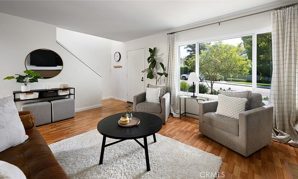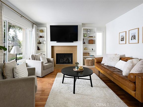 Step into this light-filled, end-unit townhouse-style home featuring 3 bedrooms and 1.5 bathrooms. Located in the desirable Villeurbanne community, this home offers privacy with no rear neighbors and only one shared wall. The interior boasts a spacious living room with a cozy fireplace, built-in shelving, and large windows. The bright, open kitchen has an adjacent dining area with sliding glass doors that open to a private rear patio, perfect for entertaining or quiet mornings. The primary retreat includes a large closet, dual vanities, and a makeup vanity. The townhome is equipped with an updated HVAC system (central air conditioning and heat), dual-pane windows, PEX plumbing, one carport parking space, and two assigned uncovered spaces. The resort-style community features a pool, spa, clubhouse, and hillside walking paths. It is just minutes from Orange Hill Restaurant, Old Town Orange, Peters Canyon & Irvine Regional Park, and offers easy access to the 55/22/91 freeways as well as the 241/261 toll roads—ideal for commuting!