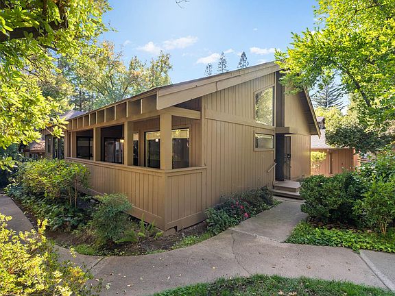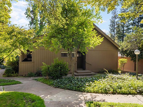Charming cabin style home in the Desirable Gated Rustic Woods Community. This home features 2 bedrooms and 2 baths and a 2 car Detached Garage. There is plenty of natural light with the vaulted ceilings and large windows. The community features winding pathways through the serene mature trees. Must See!!