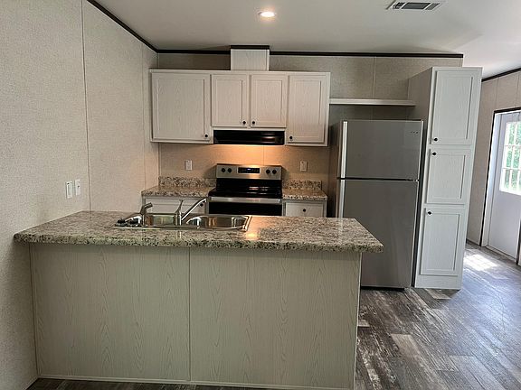 A new 2023 mobile home is ready for moving in! It has wood-style vinyl flooring throughout. The beautiful kitchen includes a stove, refrigerator, double sink, and plenty of cabinets and shelf space. The kitchen and dining area are open to the living room, making it easy for entertaining! The home has two bedrooms, two bathrooms, and a laundry room with hookups. The two bedrooms have walk-in closets, and the two bathrooms have a large shower in the main bathroom and a shower with a bathtub in the second bathroom. The home sits on its private lot with a spacious driveway in a quiet neighborhood; it is close to Hwy 295 and 95, shopping, and more! Section 8 tenants are accepted.