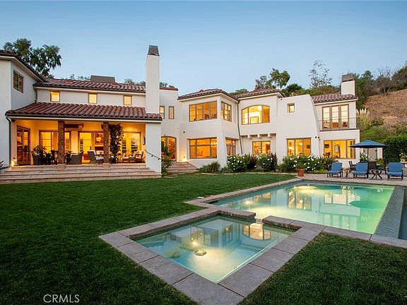 Stunning home in highly desirable private gated community of Malibu providing unmatched beauty and serenity one mile to the Pacific Ocean. Tucked into a beautiful canyon enclave reminiscent of a Tuscan villa, a timeless Spanish architectural gem awaits. Four bedrooms and five bathrooms offering 4,873 square feet of luxurious living space situated on a private 42,692 square foot lot. Primary bedroom has high ceilings with exposed beams, canyon views, fireplace, balcony, walk-in closet, beautiful built-ins and bonus office area. Breathtaking primary en-suite has a large walk-in shower, double-sinks with marble countertops and luxurious soaking tub overlooking panoramic views to the ocean. Optional office/bedroom with gorgeous built-in library fit for any book lover complete with romantic Italian Black Slate fireplace. Fourth bedroom has a separate entrance, fireplace and walk-in closet, an ideal in-law flat or artist's retreat. Enjoy a light & bright entertainer’s kitchen with: stainless steel island with a second sink, Gold Calacatta Marble counter, Sub-Zero refrigerator, Viking double oven with four burners plus griddle & grill-top, wine fridge, Miele Cappuccino maker, two Bosch dishwashers, pantry and eat-in kitchen bar. Open floor plan flows seamlessly from kitchen to an intimate dining nook to a cozy family room. A large formal dining room encased in windows pours natural light and at night, the illumination from the outdoor fireplace can be enjoyed over leisurely meals. The jewel of this home; an unparalleled backyard sanctuary surrounded by nature and sweeping canyon views. The embodiment of the California dream offering an indoor-outdoor lifestyle with: outdoor living & dining room, sparkling pool with Baja deck, spa, built-in grill, raised gardens, drought tolerant California native landscaping and the shade and majesty of four Oak trees. Other amenities include: high ceilings, wide plank Quarter Sawn Oak floors, abundant windows, French doors, sky-lights, 400 bottle temp. controlled wine closet and two separate garages. Meander along your private road saying hi to familiar neighbors on their nightly strolls. Close proximity to the best restaurants, beaches and shopping in LA. Built with love and care; and occupied by one owner, a beloved gathering place for family & friends. If you like stars at night, spotting deer outside your bedroom window, mystical sunsets, abundant nature, a neighborhood feel and ocean dips; this might be the home for you!
