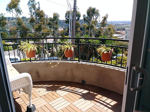 2 car garage!! Upstairs separate unit inside a large townhouse. Separate entry through the garage OR you can use the front door with locking door to your unit. Living room, master bedroom with walk in closet, master bathroom with 2 sinks and separate cabinets, whirlpool tub, views views views. Living room and bedroom share a balcony that faces west. Another small balcony facing south. Kitchenette has frig, small oven, 2 induction burners, microwave, and large sink. Pantry for storage. It is so light and airy, like living in the mast of a ship. Easy access to the 5, 163, 8, 15. Close to trolley stop with plenty of parking. Close to USD, downtown, Old Town, Sea World, Mission Bay. Full laundry. Did I mention 2 car garage? $150 utilities No smoking. A $29.99 per person background and credit check. Good credit and work history required.
