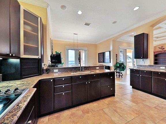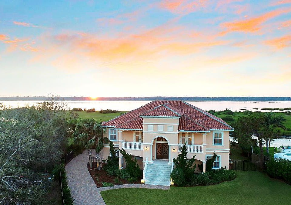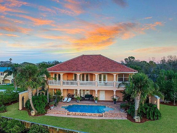 Welcome to amazing sunsets in your beautiful home overlooking the Intracoastal Waterway. Come & relax in your salt water infinity edge pool while living in paradise everyday. The backyard is over 200 ft wide running along the ICW with breathtaking views of undisturbed Marsh and wildlife. As you enter this Mediterranean home, there are extra wide wood stairs that takes you either up or downstairs. The main living areas have spectacular views of the ICW. The 2nd floor has a balcony that is as wide as the home for enjoying the serene outdoors. This home includes an elevator, 8 foot doors, central vac system, speakers throughout, tile floors, electric fireplace, crown molding, wetbar, extra storage, concrete block 1st floor, gutters, gated driveway, boat dock, 3.5 car garage.