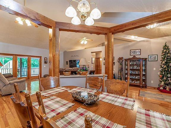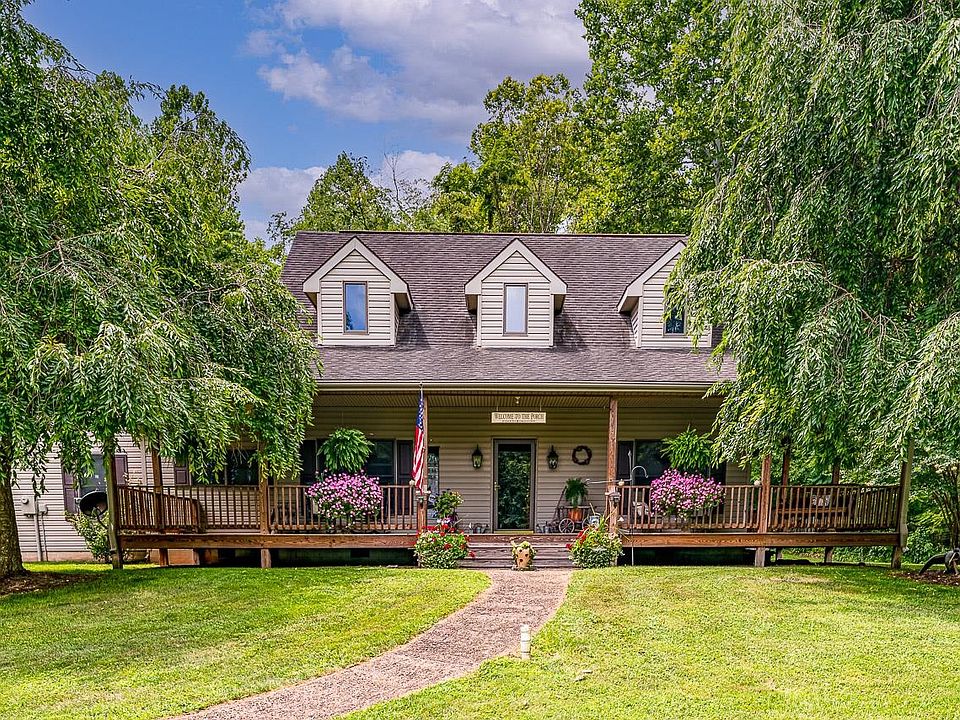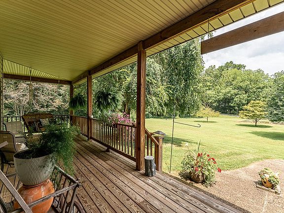 One owner home, one level cape code style offered on 9.33 mostly wooded acres with wet weather creek. Home built w/solid 8" insulated concrete forms. Quality throughout w/Anderson double hung tilt windows. 16' ceilings. Open floor plan w/formal dining room. Great flow for inside & outside entertaining. Wrap around porch is 8' wide, w/mature trees. Split bedroom floor plan with large master suite & access to deck. Skylights offer abundant natural light. Kitchen cabinets are hickory w/roll out pantry & pot/pans drawer. Electric heat pump is only 8 years old. Propane gas stove conveys for back up heat. Impressive 24x40 garage/workshop sufficient to hold 5 cars. 13x53 and 13x24 attached sheds w/gravel floor for ample storage.
