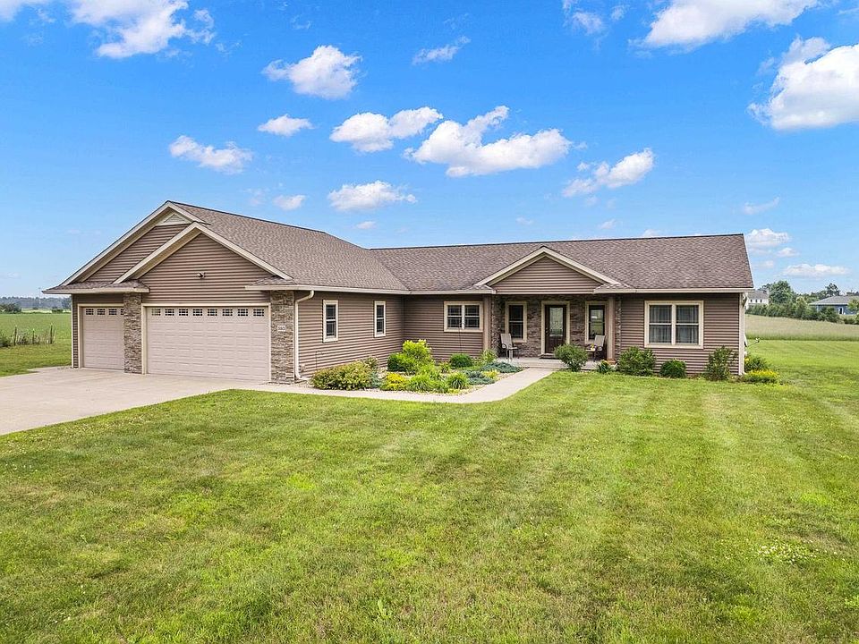 Presenting a one of a kind home in the Town of Hull. Including everything you are looking for! Main floor living including laundry room, 3 bedrooms and 2 full bathrooms and tons of storage. The open concept layout with vaulted ceiling shows off the gorgeous windows overlooking the expansive yard and patio. This custom built home offers a feeling of luxury and convenience. Beautiful cherry cabinets and tons of counter space for meal prep, dining or entertaining, you name it! There is also a nice walk in pantry to house extra food and appliances. The primary ensuite includes a jet tub for the long days when you are looking for relaxation, and a sprawling walk in closet. The basement is unfinished and already plumbed for an additional bathroom and has an egress window in place. The 3 car garage has been insulated and drywalled and is ready to house your toys or maybe even a workshop. The lawn is maintained by an unground sprinkler system. The seller is providing a UHP Elite home warranty. Schedule your showing today!