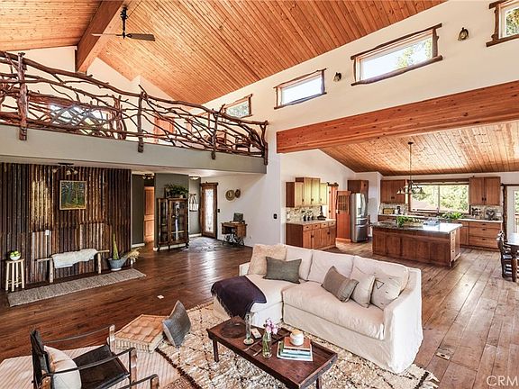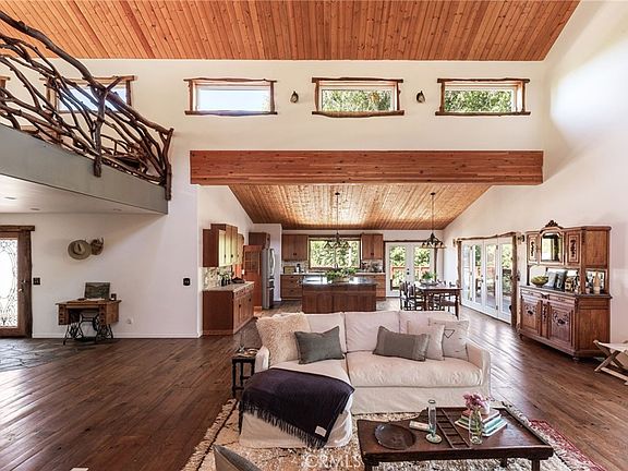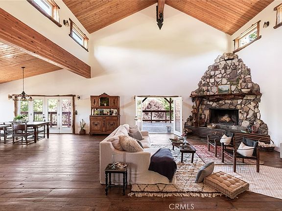 On nearly 3 acres at the edge of the San Bernardino national forest you will find a property sincerely unique to the area. Down a country road a 3,000+ sq. ft. farm house sits quietly surrounded by a fruit tree orchard, berry patch, chicken coop and land for horses and livestock. Just about 80 miles from Southern Californias busiest cities you will find a place where peace and quiet and outdoor adventure are unparalleled. Built in 2006, the 4 bed 4 bath home features modern amenities while maintaining the feel of ranch style living. An expansive living space with soaring architecture complimented by a stone fireplace is the center of the home. Wall to wall French doors create an open air flow to an expansive wrap around deck that is perfectly situated to enjoy sunrises and take in the beauty of the property and its unique four seasons. Pick apples in the Fall and make snowmen in the Winter! Enjoy the abundant floral blooms in the Spring & Summer. Adjacent to the home, a 6 car garage is conveniently located and boasts a workshop and extra storage along with outdoor parking for a horse trailer, RV or boat. With part of the property perfectly set up for boutique homestead living, including a private well to support all irrigation needs, one can immediately enjoy the offerings of the property while reimagining the undeveloped spaces for equestrian use, additional gardens and so much more! An upgraded well with 5000 gallons water storage, updated interior and exterior electrical systems, and a metal roof are among the list of unique and valuable features of the property. Also ask about opportunities to acquire Lake Arrowhead lake rights.