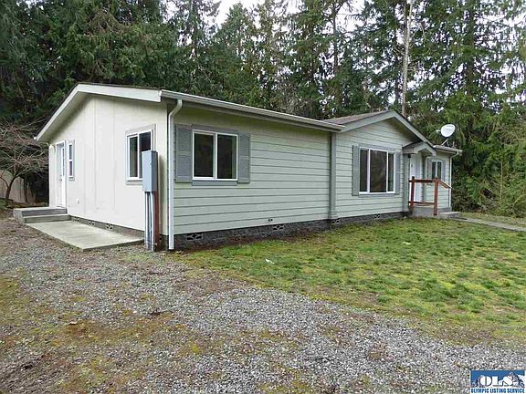 Newer doublewide home on 0.54 acres located in a wooded setting midway between Sequim and Port Angeles. This 3 br, 2 ba, home features a kitchen w/ island, dining room off kitchen, master suite w/full bath.