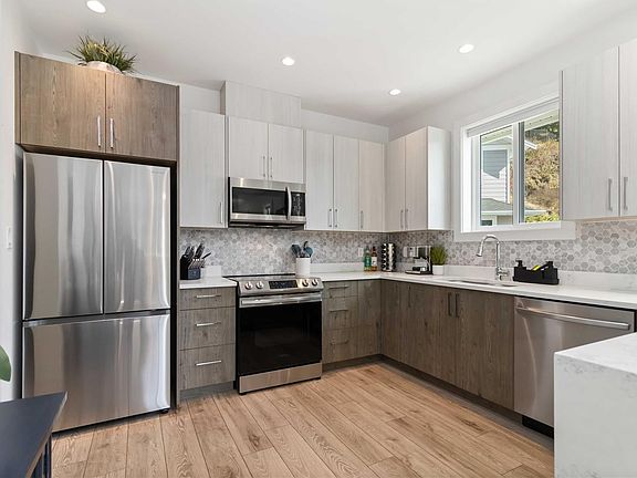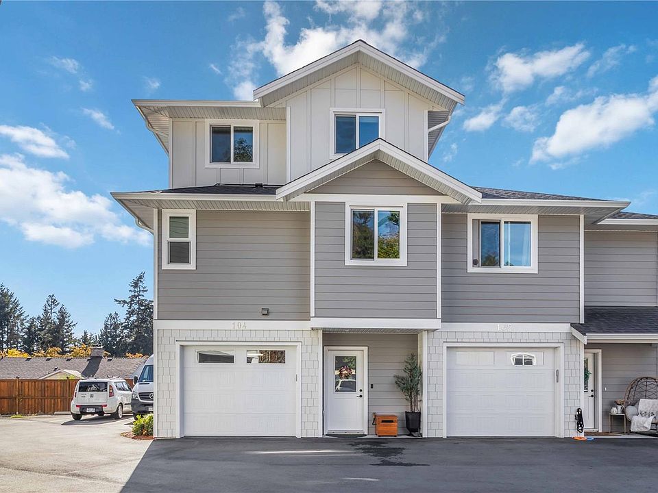 OPEN HOUSE SATURDAY OCTOBER 4, 10AM-NOON! Welcome to this immaculate duplex-style home built to BC’s highest step code standards, saving you hundreds annually in hydro costs. The contemporary three-level design offers an open concept layout, gas furnace, triple-pane windows for energy efficiency and soundproofing, EV charger readiness, hot water on demand, and a low-maintenance synthetic lawn—no mowing required. Inside, enjoy 9-ft ceilings, a spacious primary suite with spa-like ensuite, quartz countertops throughout, modern fixtures, durable flooring, and cozy carpeted bedrooms. Additional features include a tandem garage that can double as a flex space, a bonus mudroom, a custom kitchen peninsula for extra storage and prep space, tasteful feature walls, and blinds in every room. Stylish, efficient, and move-in ready, this home blends comfort with modern design.