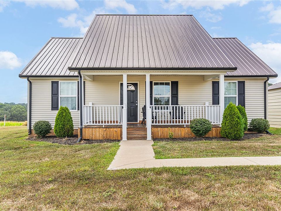 Welcome to 593 Hollis Thomas Road in Glasgow, Kentucky! Built in 2020, this like-new home offers the perfect blend of modern convenience and peaceful country living. Featuring 3 spacious bedrooms, 2 bathrooms, and a split bedroom floor plan, this home was thoughtfully designed for both comfort and privacy. Step inside to an inviting open concept layout, where the living, dining, and kitchen areas flow seamlessly together, ideal for entertaining or simply enjoying family time. The kitchen is complete with stainless steel appliances and plenty of workspace, making it a true centerpiece of the home. Outside, you'll love the covered back deck, perfect for taking in the scenic surroundings on the home's 0.63-acre lot. A detached one-car garage offers additional storage and parking, while the metal roof provides long-lasting durability and peace of mind. If you're searching for a move-in ready home with space to breathe and a setting that feels like a retreat, this one checks all the boxes!