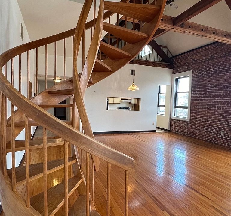 Exposed beamsGleaming hardwood floorsBright and spacious unitSpiral staircaseOversized windows