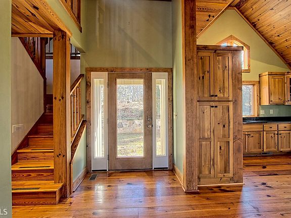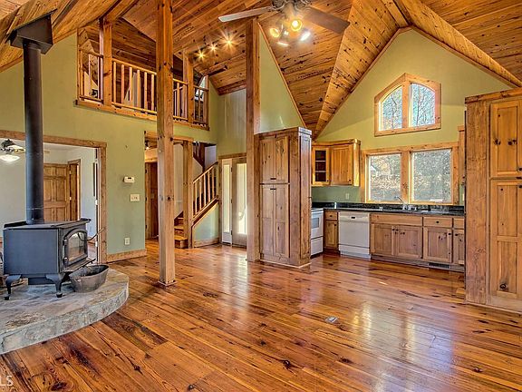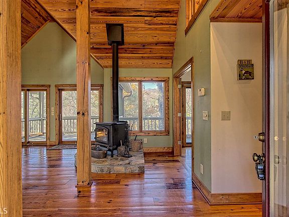 Looking for something special in a mountain home? Put 593 Taylor Ridge on your list. Custom, rustic MTN home. Easy access from Hwy 441. Close to Dillard but tucked away in wooded surroundings. 3 BR/ 3ba. Wide plank hardwood flooring, Pella windows and doors, Kohler fixtures, granite counter tops are just a few key features of this MTN gem. C/H/A plus a cozy Quadra wood stove. Upper Level offers a master suite w/ loft sitting area. Main Level perfect for entertaining. Open and spacious with vaulted ceiling and exposed beams. Lower level complete with play-game room, bunk room and guest bedroom. Lots of outdoor living space including a large screened porch just off the Livingroom and kitchen. Circular drive with main entrance under a porte-cochere.