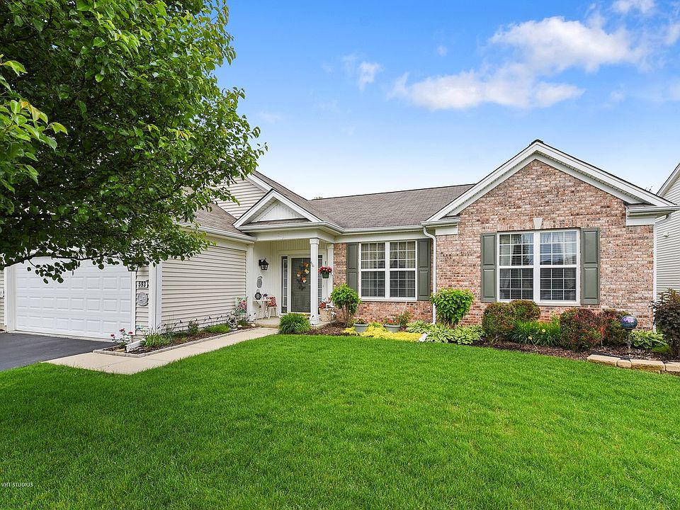 Beautiful "Cascade" model with private backyard and extra mature trees with East Exposure. Newer bamboo flooring in Great Room, Dining Room, Den, Foyer, Sun Room and 2nd bath. Kitchen has 42" cabinets with handles, corian counters, backsplash, double oven, and new disposal. New Hot water heater 4/2017 with instant hot water . Utility room has cabinet doors in front of furnace and hot water heater. New lights throughout. Double brick patio.Excellently maintained! This home is conveniently located near College Green entrance and exit. Edgewater is an Active Adult community with beautiful Creekside Lodge with Indoor and Outdoor Pools, hot tub, Fitness Center, Billiard room, gated 24/7. No more grass mowing or snow shoveling! Consignor at desk from 8 am to 9 pm. Creekside Lodge is a very active Lodge with a lot of activities! (Please note: large mirror in dining room is negotiable, both bedroom curtains and 2nd bath curtain on tub enclosure are excluded)