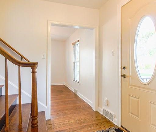 A true cream puff with almost 2000 square feet of living space! Fresh paint & gleaming hardwood floors throughout make this home move in ready and so pretty! Three living areas on the main floor including a large living room with faux fireplace & beautiful wooden wall. Home office room with a glass door for privacy. Back family room great for entertaining! Kitchen w/ stainless appliances, built-in shelving & a nice size dining room. Bedrooms with built in storage & great closet space. Full bath upstairs & a half bath on the main floor. Main floor laundry. Tons of closet space. Oversized 2 car garage. Brick paver patio. Furnace & AC replaced in 2019. Living room window is being replaced.