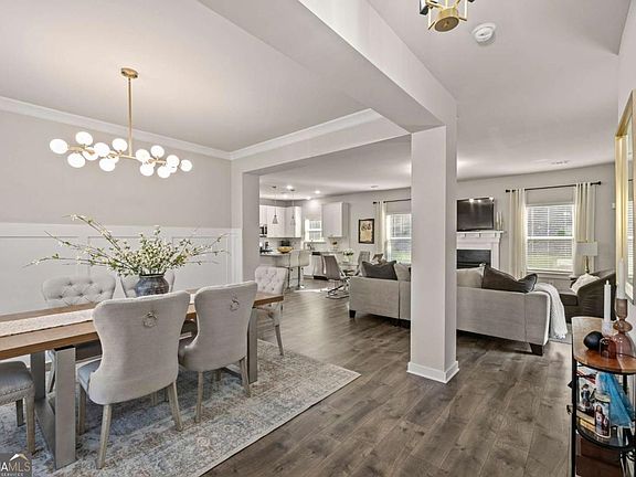 PRICE IMPROVEMENT by 20K!!! This stunning impeccably maintained home is located in the popular Lakes at Franklin Goldmine and sought-after highly desirable West Forsyth High School district. Step in from the covered front porch with a seating area into bright foyer that leads to the sun field formal dinning room with modern paneling and high end lightning. Open concept kitchen and living space features include LVP floors, white cabinetry, stone countertops, stainless steel appliances, walk in pantry and kitchen island. The family room with fireplace is perfect for family nights, entertaining guests or simply relaxing. Beautiful hardwood steps will take you to the second floor that feature a spacious Master bedroom with tray ceiling, en-suite bathroom with double vanities, large shower with dry area and walk in closet with built ins with drawers , shelves and hanging rods. In addition to master suite, 3 secondary bedrooms, each with walk in closets are spacious for kids or guests. Secondary full bathroom comes with shower/ tub combo and double vanity. Laundry room is conveniently located on the second floor. Outdoor with covered patio, ceiling lights and overlooking private backyard feels like a oasis that you can enjoy anytime of the year. The Lake at Franklin Goldmine is a wonderful community with swim, tennis and playground. Conveniently located near great schools, shoppings, and dinning. Low Forsyth County taxes are like a cherry on top.
