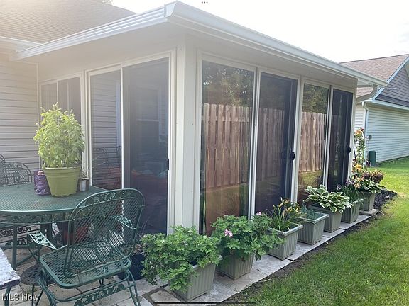 Check out the Beautiful Views of Lake Erie from the front porch! Enjoy an evening sunset from your front porch of this easy living end unit ranch condo. This condo features a large master bedroom with large walk in closet and full bath, there is an additional bedroom and bedroom/bonus room that can be used as a bedroom. The four-season room was added in 2022 and walks out to a patio and fenced area. The vaulted living room is open to the kitchen that features stainless steel appliances 2023. The condo development offers a community room to host events and a workout room with equipment. This building is situated next the condo unit. Great amenities just steps away. The two car garage has pulled down steps to the attic that has built in shelves for storage