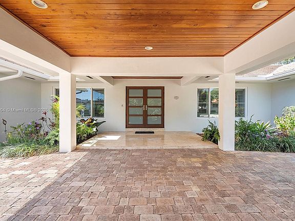 This 4 BR 3.5 BA SFH (0.34 Acre Lot) with approximately 3,000 Sq Ft is located in one of South Miami's most sought after neighborhoods. This residential enclave offers elegant travertine & wood floors throughout, impact windows & doors, and a split floor plan with 3 A/C zones providing superior comfort, privacy and tranquility. The spacious Primary Suite features walk-in closets, a spa-like bath w/ direct access to the patio. Relax or entertain in the oversized 8-Ft deep heated pool w/ spa surrounded by lush landscaping, a wet bar, a mature mango tree, and a passion fruit vine. Concrete tile roof, 2-car garage, porte-cochere, and circular brick paver driveway. Just minutes from Miami's top Private and Public schools, parks, cinemas and the Shops at Sunset Place.