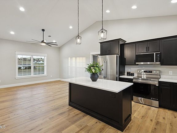 Step inside this stunning 2025-built residence and discover a fresh, neutral palette ready for your personal touch. Luxury vinyl plank flooring delivers the rich look of hardwood with unbeatable durability—perfect for pets, and everyday life. The open-concept living area flows effortlessly into a chef-inspired kitchen featuring sleek black cabinetry, gleaming quartz countertops, and premium stainless-steel appliances. A generous island anchors the space, ideal for casual meals, holiday baking, and lively conversations.