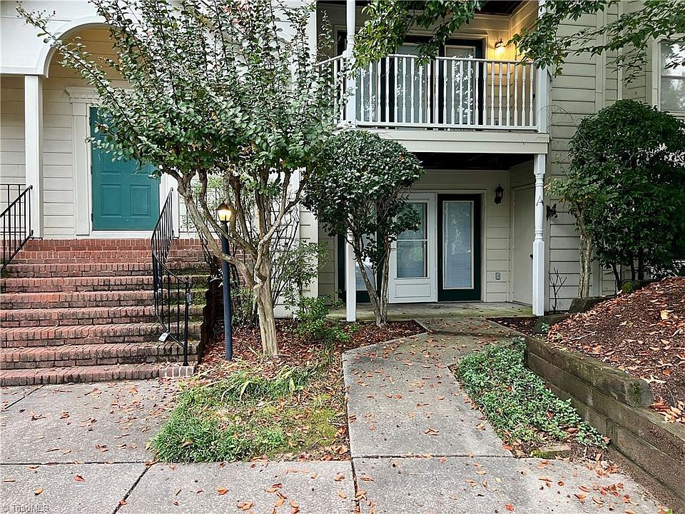 NO STAIRS needed with this ground level, well-kept, 2 bedroom, 2 full bath condo within walking distance to Guilford College and Quaker Village. The living room is open to the kitchen with a peninsula bar with seating, updated appliance package, lots of storage and pantry space. Primary bedroom is sequestered in the back of the unit with private ensuite bathroom with low entry walk-in shower, oversized doorways and spacious walk-in closet. Secondary bedroom is just across the hall from full bath with tub shower combo. Spacious laundry room with hookups and additional storage space. This unit offers a covered main level patio just outside with storage and utility closest. Wonderful Greensboro location with quick access to the Urban Loop!