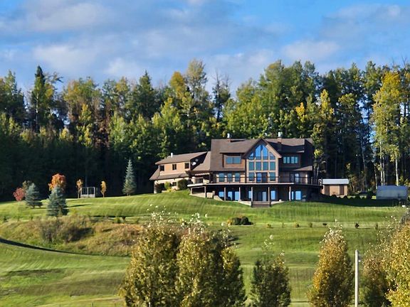 Absolutely breathtaking executive style home with outstanding panoramic peaceful country views only 5 minutes from town. This gorgeous meticulously custom built home is situated on a stunning fully landscaped acreage. Over 6000 sq feet of fully finished living space and an attached triple car heated garage with 8' overhead doors. As you walk in the center piece staircase and fireplace will take your breath away and are second to none. Pick any of the triple pane tinted anti glare windows (all replaced in 2022) and the views are amazing.