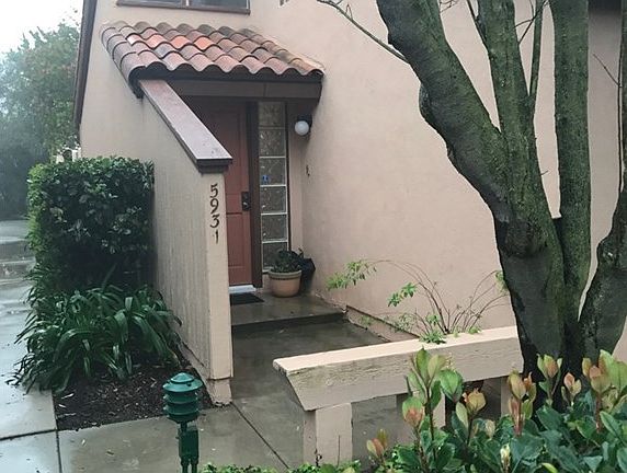 Extremely rare One-story with cathedral ceilings throughout and no steps!!! Feels more like a house than a condo.Easy parking access with 2 designated spots: park in front of unit or in the nearby covered parking structure. Sunlight streams in through the windows making this unit bright and cheery. Cathedral ceilings make this unit seem even more spacious. wood burning fireplace makes Winter nights cozy. Large bedroom has tall ceilings, a slider that opens onto a private patio, and a closet that runs the full length of the wall. Plenty of room for a king-sized bed and dressers. Additional closet space is in the hallway. Two patios: one off of the dining room has a perfect sized garden and area for sitting and enjoying the sun. Community has a great pool and clubhouse. Great top of the hill RPV location. Bathroom upgraded with granite counter and modern bowl sink. Water, trash, earthquake insurance are included in dues.