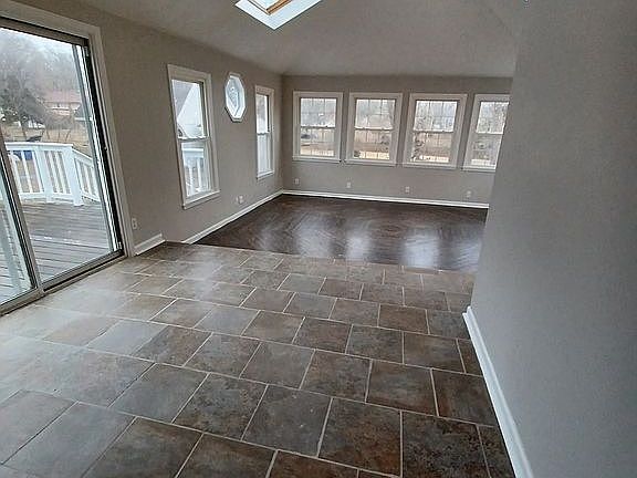 This beautiful 4 bedroom, 2 bathroom home with a detached 2-car garage sits on just over one acre of land and has recently been completely renovated. It has a sunroom with a vaulted ceiling and skylights, a fireplace on the main level, as well as one downstairs in the unfished basement for those inspired to grow with their home, and a deck with access from the kitchen and the mudroom. It has a large kitchen with dinette space and comes equipped with a refrigerator, gas stove, and dishwasher, plus a built-in rack to hang pots and pans. It has a separate dining room between the living room and kitchen with a built-in nook for added decor. The living room is spacious, with enough room for a living area and a separate sitting area. The upstairs has been converted to a large bedroom with built-in bookshelves, drawers, closets, and storage space, and would be perfect as a studio, children's play area, or the ideal bedroom and living space for your teen(s). The back bedroom has a vaulted ceiling and plenty of space to be used as a bedroom or home office, with a ceiling high enough to allow for built-in bookshelves and a ladder on wheels, should your heart desire to have a library of your own. The front bedroom features light blue walls with a soft white stencil, perfect for your little one, guest room or baby-to-be. While the basement is unfinished, it has water hookups for a 3rd bathroom, plus a 2nd fireplace and a walkout to the backyard. The basement is large enough to store your things and stays dry with the help of a sump pump. The two-car detached garage has a full-sized loft above it with a staircase leading to it. The driveway wraps around to the back of the home, creating additional patio space up to an old brick step leading down to your firepit. *** PLEASE NOTE - The seller is finishing a few remaining items, including a new floor in the back bedroom, hardware for the kitchen, and a glass shower door for the master bathroom. New shutters will also be added to the front windows. This home will be listed by: Sarah J Brown with Platinum Realty. Professional photos to follow.