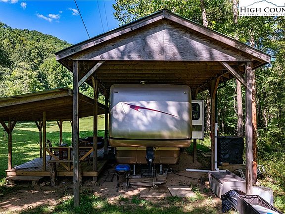 Gorgeous tract with enormous level yard, 5th wheel travel trailer with cover and covered deck, and the Big Dry Run creek in the back! Wonderful setting just minutes from the pristine waters of Watauga Lake or an easy drive back into Mountain City for any necessities. Property has a 2 bedroom septic per the Seller and currently utilizes a rainwater collection system for the RV, with fiber optic internet available at the road. RV is offered furnished with very few exceptions so that you can close and begin enjoying the cool fall mornings and be nestled amongst the leaves as they change. Yard did not flood during the hurricane giving a peace of mind moving forward. Come and explore one of the most beautiful areas of the High Country region and enjoy the property as it is or build your dream home in the gorgeous setting! Come and see today!