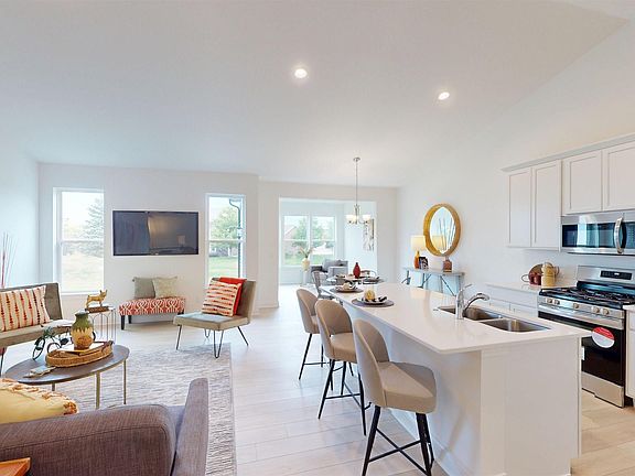 Under construction ranch townhome presented by Silverthorne Homes. Brand new Townhomes and Villas in a great new location in Hopewell Farms! The Lexington is the perfect plan with a wide range of options to make it your home. This open floorplan ranch villa can be customized to fit your needs from the individual finishes to adding additional rooms for even more space with options for a sunroom on the main level or a partially finished basement. Whether you enter through the covered front porch into the foyer or through the mudroom off the garage you will quickly see the open living spaces that feature luxury vinyl plank flooring that flows into the great room. The added volume the vaulted ceilings offer in the great room open this home up even more with the option to add a fireplace to provide even more warmth to this space. The luxury kitchen overlooks this space with a large island and plenty of room for a dining area so you have plenty of room for cooking and gatherings. The two bedrooms are split providing additional privacy, with a private owner's suite that boasts a large walk-in closet and double bowl sinks in the bathroom. Pictures of previously built homes, some with upgraded features.