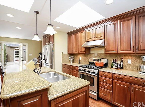 This is the Los Altos Homes you've been waiting for, welcome to 5931 E. Fairbrook Ave. Upon entering the home, you will immediately notice the beautiful oak hardwood floors and the open floor plan. The living room features plantation shutters, crown molding and recessed lighting as it leads you to an amazing kitchen. A Chef's dream kitchen awaits, with granite counter tops, custom cabinetry, stainless steel appliances, and natural light from skylights over the breakfast bar; this will no doubt enhance your epicurean experience. The open dining area leads you to a cozy family room with a raised hearth fireplace. The master bedroom is nicely appointed to include an oversized bathroom that also has been remodeled. The master has French doors that open to a private patio. The remainder of the bedrooms and bathrooms show like model rooms, all of them upgraded and in wonderful condition. The kitchen / dining area also has French Doors that open to the stunning patio, highlighted by the custom stone-work throughout. The family will be drawn outdoors by this inviting space.The driveway can be gated, which also opens the patio for entertaining larger groups or more privacy. The home being located in one of the most highly sought after school districts.
