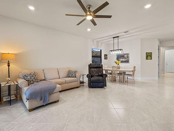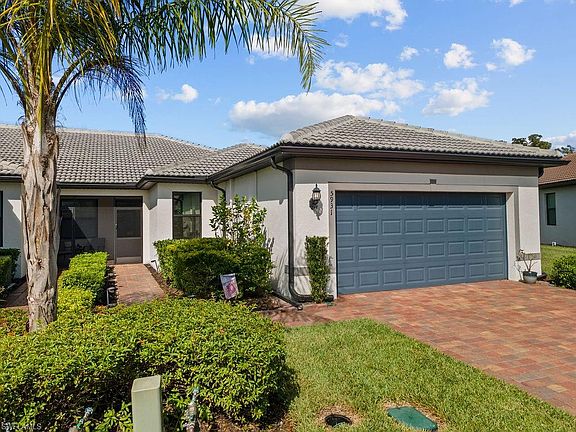 Welcome to this immaculate "Cascadia" model 2 bedroom + den, 2 bathroom end-unit villa located in the desirable 55+ community of Del Webb Naples in Ave Maria. Thoughtfully designed for both comfort and functionality, this home features upgraded porcelain tile flooring set on a diagonal throughout, 8' doors, upgraded baseboards, and custom window treatments over impact-resistant windows for added peace of mind. The open-concept kitchen is highlighted by quartz countertops and timeless shaker-style cabinetry, flowing seamlessly into the bright and spacious living and dining areas – perfect for relaxing or entertaining. The private master suite includes a walk-in closet and a beautifully appointed en-suite bathroom with granite countertops and a large walk-in shower. A flexible den with French door entry provides the ideal space for a home office, guest room, or hobby area. Additional features include a 2-car garage and the advantages of being an end-unit, offering extra privacy and abundant natural light throughout. As a resident, you’ll enjoy access to Del Webb’s Oasis Club resort-style amenities, including two clubhouses, a fitness center, a resort-style pool with beach entry, lap pool, and Jacuzzi; golf simulator, billiards, two tennis courts, twelve lit pickleball courts, four bocce courts, a large catering hall with kitchen, a café, library, arts and crafts room, and an activities director offering a full calendar of social events – all within a golf cart-friendly community. Golf enthusiasts will also appreciate the semi-private championship-style golf course, complete with a pro shop, and on-site golf professional.