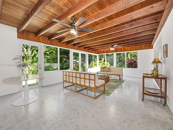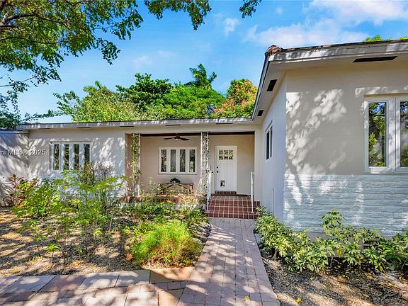 Welcome to this charming 3-bedroom, 2-bathroom Biltmore Heights home with hardwood floors throughout living areas and bedrooms. The spacious sun-drenched family room features wall-to-wall windows, open beam ceiling and tile flooring, while the inviting front porch offers beautiful Southern exposure surrounded by mature shade trees. Inside, discover an updated kitchen w/skylight and formal dining room. Authentic 1950s vintage touches include original bathroom tiles and classic Dade County pine wainscoting in one bedroom. Impact windows and doors provide hurricane protection and quiet. The converted garage offers versatile workspace and laundry area, perfect for home office or studio (the SF of the converted garage is NOT included in the living area total). One of Miami's best neighborhoods!