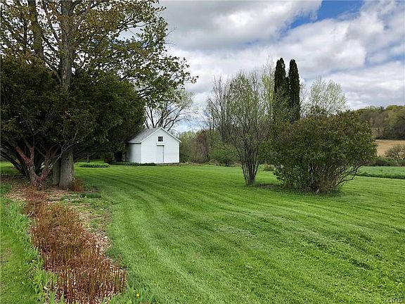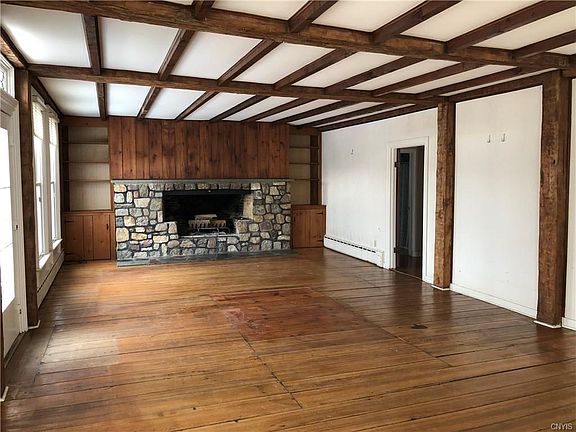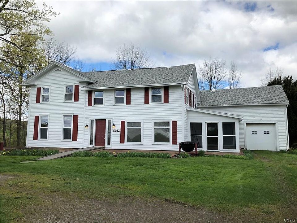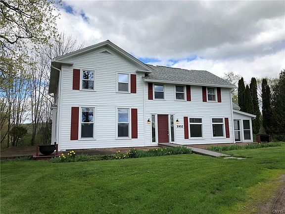 Very spacious colonial/farmhouse sets on the top of a hill and offers beautiful views, especially gorgeous sunsets! LR is approx. 34x17 w/woodburning stone fireplace at one end, newly remodeled kitchen w/breakfast bar, formal DR, 1st flr. laundry, den (library/study/playrm), screened porch, 4 BRs up including huge master suite, 3 full baths, walk-in attic (expandable living space), beautiful wood flrs. (some old plank), Buderus boiler, like-new roof, one outbuilding, nearly 5 acres. Lots to enjoy!!