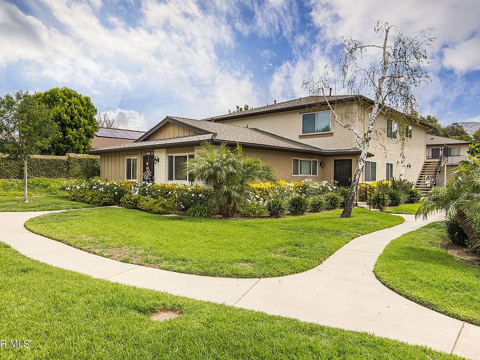 Tranquil single level condo located in the desirable complex of Vista Del Monte in east Simi Valley. This well laid out 2 bedroom 1 bathroom home is an upper unit, featuring a balcony, single car garage and separate parking stall. Inside has a spacious living room with recessed lighting, laminate flooring and large bedrooms, one with a walk in closet. The kitchen has granite counters with stainless steel appliances and plenty of storage space. This unit has a downstairs laundry room and the complex includes a pool & playground area, close to Verde Park!