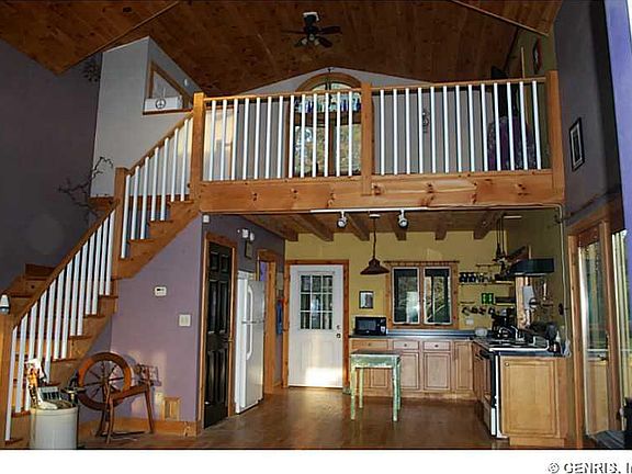 Private hilltop setting! Custom built in 2006 on 3.7 acres, with insulated poured walls, Hardie board siding, Andersen windows, hardwood floors throughout, tank less on demand water heater, loft bedroom, fenced backyard, security system, 20'x 10' covered porch, 8' ceiling basement with walkout, hot water baseboard heat and maple cabinetry. Superb construction and craftsmanship! Great property for a farmette, private, and waiting for you to call home!