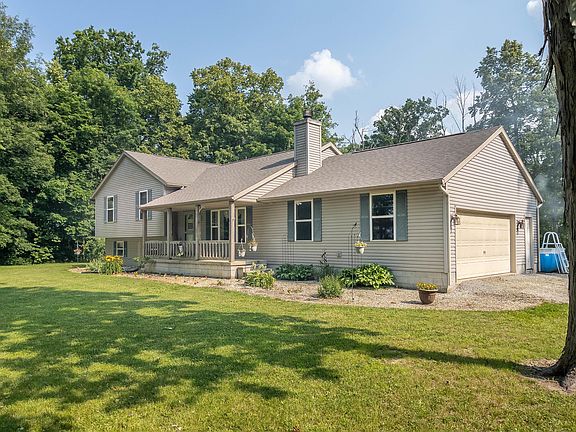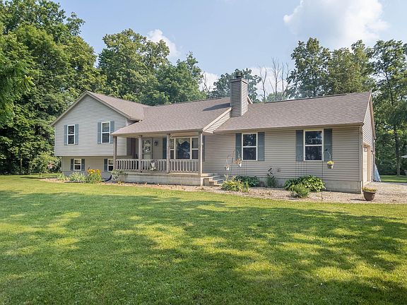 You can check off a lot of the items on your 'new home wish list' when viewing this Country home. Located in Graham School District and offering 4 bedrooms, you will love the seclusion and privacy this home offers as it is situated on a 5+ acre wooded property (with trails) and no nearby neighbors in visible site. The driveway leads you through the trees and back to the home where there is a 2 car attached garage and an area for additional parking. The covered front porch welcomes you to the home and once inside, there is a large living room (currently used as a dining room) with a wood burning fireplace and large window looking out into the private front yard. Straight ahead is the dining and kitchen area. The kitchen comes with all the 'newer' appliances to include the Dishwasher and microwave (new in 2017), refrigerator (new in 2015) and gas range (new in 2014). Off the kitchen/dining area are sliding doors that leads you out to another cover porch. This porch area looks out into the backyard and wooded lot. Upstairs there are 3 bedrooms, including the oversized owner's bedroom. The large owner's bath has a double sink vanity, soaking tub and separate walk in shower. The lower level has a family room, with a wood burning stove, the 4th bedroom and laundry area. With the 2236 square feet of living space this home has to offer, there is still more. There is a basement too! The basement offers almost 600 additional square footage that could be great for storage or a rec room area. Some outside extras are the 18x9 above ground pool that is ready and waiting for the new owners, fruit trees and 2 storage sheds. Other updates to the home include the water heater and water softener (new in 2020), central air (new in 2016) and a brand new roof (2021). Propane level billing is $100 per month and the electric cost averages $175 per month. This property is a one of kind and is on a quiet Country Road.