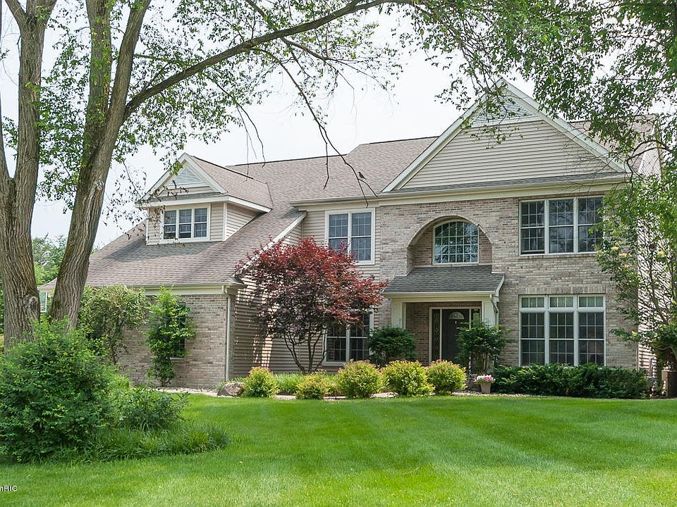 Best overall value in Portage Schools, including lower Texas Twp taxes. On a safe, quiet cul de sac. The main floor presents a striking central great room with soaring 18' window wall and gas fireplace, formal dining with crown molding, kitchen with breakfast area and stainless steel appliances (double oven, island range, and built in microwave), cozy living room, main floor laundry, foyer, 1/2 bath, and large office. Deep grain beechwood floors accent the entry, kitchen and dining areas. Four sec ond floor bedrooms with 3 baths include a master suite with vaulted ceiling, gas log fireplace, spa-like bath, and spacious closet. An additional two bedrooms come essentially for free in the professionally finished basement that includes an expansive rec room, a bath suite, and quality construction throughout with insulated interior walls and ceiling for sound dampening. Each floor has its own heating/cooling zone and the home includes multiple upgrades throughout including Kinetico