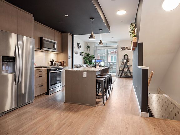 Bright modern homeGourmet kitchenStainless steel premium appliancesSoft close cabinetryNatural gas stoveCozy fireplaceFenced back garden patio